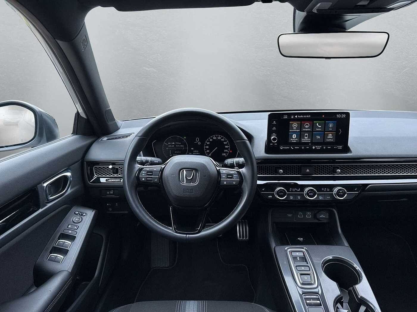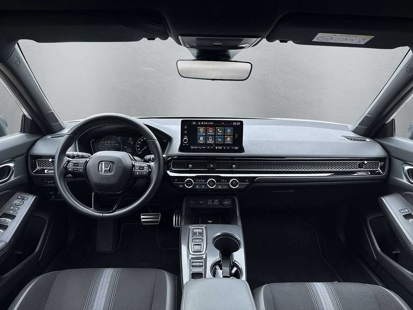 8 Lautsprecher, Airbag Beifahrerseite abschaltbar, Airbag Fahrer-/Beifahrerseite, Aktive Kopfstützen vorn, Aktive Motorhaube, Anzeige für Reifendruck im Display, Audiosystem: Radio/MP3-Player, Ausschaltverzögerung für Innenbeleuchtung, Autom. Begleitfunktion der Beleuchtung (Coming Home, Leaving Home), Automatische Fahrlichtschaltung / Lichtsensor, Außenspiegel asphärisch, links, Außenspiegel elektr. anklappbar, Außenspiegel elektr. verstell- und heizbar, beide, Außenspiegel schwarz lackiert, Bremsassistent, Bremsenergierückgewinnung (Rekuperationssystem), Brillenhalter im Dachhimmel integriert, Dachantenne im Haifischflossen-Design, Einparkhilfe vorn und hinten, Elektr. Bremskraftverteilung, Elektromotor 135 kW (Hybridantrieb), Fahrassistenz-System: Adaptive elektr. Servolenkung (Motion Adaptive Electric Power Steering), Fahrassistenz-System: Auspark-Assistent, Fahrassistenz-System: Berganfahrhilfe, Fahrassistenz-System: Fahrprofilauswahl (Drive Mode), Fahrassistenz-System: Fernlichtassistent (HSS), Fahrassistenz-System: Intelligente Geschwindigkeitsanpassung (Tempomat) mit Abstandsregelung I-ACC, Fahrassistenz-System: Kollisionswarnsystem mit Bremseingriff und Beschleunigungskontrolle (LSBC), Fahrassistenz-System: Kollisionswarnsystem mit Bremseingriff und Fußgängererkennung (CMBS), Fahrassistenz-System: Müdigkeits-Warner (Driver Attention Monitor), Fahrassistenz-System: Sicherheitssystem mit automatischem Notruf (ERA GLONASS / eCall), Fahrassistenz-System: Spurhalteassistent (LKAS / LDW), Fahrassistenz-System: Spurverlassenswarnung (Lane Departure Warning, LDW), Fahrassistenz-System: Stauassistent (LSF), Fahrassistenz-System: Totwinkel-Assistent, Fahrassistenz-System: Verkehrszeichenerkennung, Fensterheber elektrisch vorn und hinten, mit Auf-/Ab-Automatik, Fensterzierleisten schwarz seidenmatt, Freisprecheinrichtung (Bluetooth) mit Sprachsteuerung, Fußmatten, Gepäcknetz an Vordersitzlehne rechts, Gepäckraumabdeckung / Rollo, Getriebe Automatik stufenlos - ECVT, Getränkehalter hinten, Getränkehalter vorn, Gurtstraffer, Handschuhfach beleuchtet, Heckleuchten LED, Hybrid 135 kW (Motor 2,0 Ltr. - 105 kW), Induktionsladeschale für Smartphone, Infotainment-System: Honda Connect mit 9" Touchscreen / Navigationssystem / Internetbasierende Dienste / DAB-Tuner, Innenraumfilter: Pollenfilter, Innenspiegel mit Abblendautomatik, Intelligenter Geschwindigkeits-Begrenzer (ISL), Isofix-Aufnahmen für Kindersitz, Karosserie: 5-türig, Klimaautomatik 2-Zonen, Knieairbag Fahrerseite, Kombiinstrument Digitalanzeige 7 Zoll, Kopf-Airbag-System, Lendenwirbelstütze Sitz vorn links, elektr. verstellbar, Lenksäule (Lenkrad) höhen-/längsverstellbar, Leseleuchten hinten, Leseleuchten vorn, Leuchtweitenregelung automatisch, LM-Felgen, Mittelarmlehne hinten, Motorsound-System (Acoustic Vehicle Alerting System, AVAS), Multifunktion für Lenkrad, Nebelscheinwerfer LED, Nebelschlussleuchte, Notbremssignal, Otto-Partikelfilter (OPF), Parkbremse elektrisch, Reifen-Reparaturset, Rückfahrkamera, Rücksitzlehne geteilt/klappbar, Schadstoffarm nach Abgasnorm Euro 6e, Scheinwerfer LED, Seitenairbag hinten, Seitenairbag vorn, Seitenairbag vorn mitte (Center-Airbag), Sitz vorn links höhenverstellbar, Sitzbezug / Polsterung: Stoff/Kunstleder, Sitzheizung vorn, Smartphone Schnittstelle (Apple CarPlay & Android Auto), Sonnenblenden mit Make-up-Spiegel, Sonnenblenden mit Spiegel (beleuchtet), Sport-Pedalerie, Steckdose (12V-Anschluß) im Koffer-/Laderaum, Steckdose (12V-Anschluß) in Armaturentafel, Türgriffe außen Wagenfarbe, USB-Ladeanschluß hinten (2-fach), USB-Ladeanschluß vorn, USB-Schnittstelle, Verglasung hinten abgedunkelt (Privacy Glass), Verzurrösen Koffer-/Laderaum