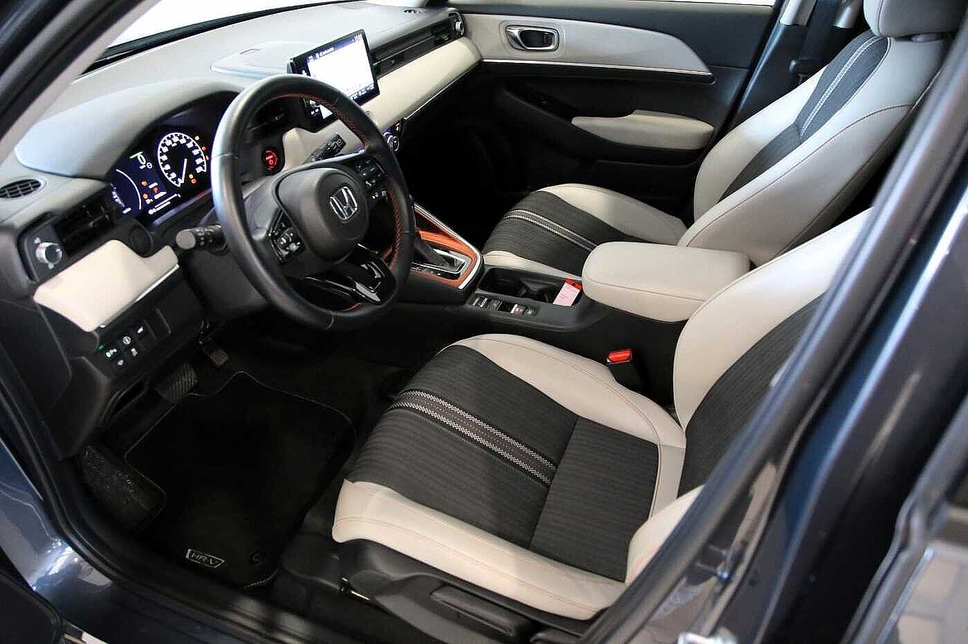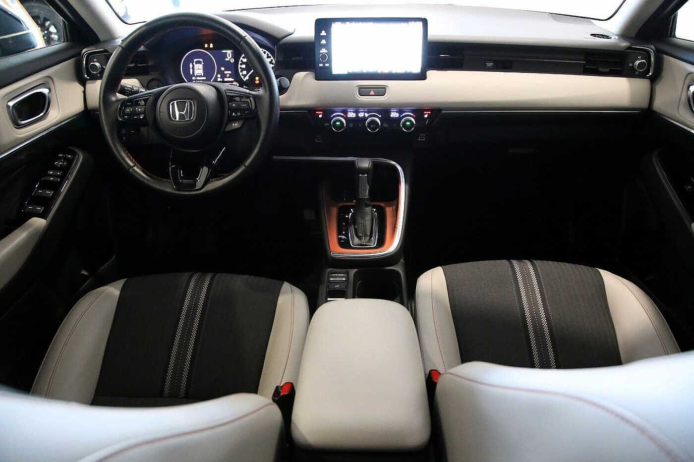 6 Lautsprecher, Airbag Beifahrerseite abschaltbar, Aktive Kopfstützen vorn, Anhänger-Stabilisierungs-Programm (TSA), Anzeige für Reifendruck im Display, Autom. Begleitfunktion der Beleuchtung (Coming Home, Leaving Home), Automatische Fahrlichtschaltung / Lichtsensor, Außenspiegel elektr. anklappbar, Außenspiegel elektr. verstell- und heizbar, beide, Außenspiegel mit Bordsteinautomatik, rechts, Betätigung Heckklappe/-Deckel automatisch, Blinkleuchte in Außenspiegel integriert, Bremsassistent, Bremsenergierückgewinnung (Rekuperationssystem), Dach und Außenspiegel Kontrastfarbe, Dachantenne im Haifischflossen-Design, Dachreling, Dachspoiler, Einparkhilfe vorn und hinten, Elektr. Bremskraftverteilung, Elektromotor 96 kW (Hybridantrieb), Exterieurumfänge schwarz lackiert, Fahrassistenz-System: Bergabfahrhilfe (HDA), Fahrassistenz-System: Berganfahrhilfe, Fahrassistenz-System: Eco Assist (Econ Modus), Fahrassistenz-System: Fahrprofilauswahl (Drive Mode), Fahrassistenz-System: Fernlichtassistent (HSS), Fahrassistenz-System: Intelligente Geschwindigkeitsanpassung (Tempomat) mit Abstandsregelung I-ACC, Fahrassistenz-System: Kollisionswarnsystem mit Bremseingriff und Fußgängererkennung (CMBS), Fahrassistenz-System: Sicherheitssystem mit automatischem Notruf (ERA GLONASS / eCall), Fahrassistenz-System: Spurhalteassistent (LKAS / LDW), Fahrassistenz-System: Spurverlassenswarnung (Lane Departure Warning, LDW), Fahrassistenz-System: Stauassistent (LSF), Fahrassistenz-System: Verkehrszeichenerkennung, Fensterheber elektrisch vorn und hinten, mit Auf-/Ab-Automatik, Freisprecheinrichtung (Bluetooth) mit Sprachsteuerung, Gepäcknetz an Vordersitzlehne links, Gepäcknetz an Vordersitzlehne rechts, Gepäckraumabdeckung / Rollo, Getriebe Automatik stufenlos - ECVT, Getränkehalter hinten, Getränkehalter vorn, Gurtstraffer, Heckleuchten LED, Heckscheibenwischer, Hybrid 96 kW (Motor 1,5 Ltr. - 79 kW), Induktionsladeschale für Smartphone, Infotainment-System: Honda Connect mit 9" Touchscreen / Garmin Navi / Internetbasierende Dienste / DAB-Tuner, Innenausstattung: Style-Dekor Orange, Innenspiegel mit Abblendautomatik, Isofix-Aufnahmen für Kindersitz, Karosserie: 5-türig, Klimaautomatik 2-Zonen, Knieairbag Fahrerseite, Kopf-Airbag-System, Kühlergrill Wagenfarbe, Lenkrad heizbar, Lenksäule (Lenkrad) höhenverstellbar, Leseleuchten hinten, Leseleuchten vorn, Leuchtweitenregelung automatisch, LM-Felgen, Motorsound-System (Acoustic Vehicle Alerting System, AVAS), Multi-Info-Display (i-MID), Multifunktion für Lenkrad, Nebelscheinwerfer LED, Otto-Partikelfilter (OPF), Parkbremse elektrisch, Radstand 2610 mm, Reifen-Reparaturset, Rückfahrkamera, Rücksitz geteilt / klappbar, Rücksitze im Fahrzeugboden versenkbar, Schadstoffarm nach Abgasnorm Euro 6d, Schalt-/Wählhebelgriff Leder, Scheibenwischerenteiser vorn, Scheinwerfer LED, Seitenairbag hinten, Seitenairbag vorn, Seitenairbag vorn mitte (Center-Airbag), Seitenschutzleisten Orange, Sitz vorn links höhenverstellbar, Sitzbezug / Polsterung: Stoff/Kunstleder, Sitzheizung vorn, Sonnenblenden mit Make-up-Spiegel, Sound-System, Steckdose (12V-Anschluß) in Armaturentafel, USB-Ladeanschluß hinten (2-fach), USB-Ladeanschluß vorn, USB-Schnittstelle
