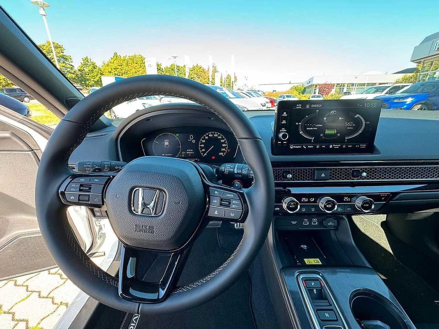 8 Lautsprecher, Airbag Beifahrerseite abschaltbar, Airbag Fahrer-/Beifahrerseite, Aktive Kopfstützen vorn, Aktive Motorhaube, Anzeige für Reifendruck im Display, Audiosystem: Radio/MP3-Player, Ausschaltverzögerung für Innenbeleuchtung, Autom. Begleitfunktion der Beleuchtung (Coming Home, Leaving Home), Automatische Fahrlichtschaltung / Lichtsensor, Außenspiegel asphärisch, links, Außenspiegel elektr. anklappbar, Außenspiegel elektr. verstell- und heizbar, beide, Außenspiegel schwarz lackiert, Bremsassistent, Bremsenergierückgewinnung (Rekuperationssystem), Brillenhalter im Dachhimmel integriert, Dachantenne im Haifischflossen-Design, Einparkhilfe vorn und hinten, Elektr. Bremskraftverteilung, Elektromotor 135 kW (Hybridantrieb), Fahrassistenz-System: Adaptive elektr. Servolenkung (Motion Adaptive Electric Power Steering), Fahrassistenz-System: Auspark-Assistent, Fahrassistenz-System: Berganfahrhilfe, Fahrassistenz-System: Fahrprofilauswahl (Drive Mode), Fahrassistenz-System: Fernlichtassistent (HSS), Fahrassistenz-System: Intelligente Geschwindigkeitsanpassung (Tempomat) mit Abstandsregelung I-ACC, Fahrassistenz-System: Kollisionswarnsystem mit Bremseingriff und Beschleunigungskontrolle (LSBC), Fahrassistenz-System: Kollisionswarnsystem mit Bremseingriff und Fußgängererkennung (CMBS), Fahrassistenz-System: Müdigkeits-Warner (Driver Attention Monitor), Fahrassistenz-System: Sicherheitssystem mit automatischem Notruf (ERA GLONASS / eCall), Fahrassistenz-System: Spurhalteassistent (LKAS / LDW), Fahrassistenz-System: Spurverlassenswarnung (Lane Departure Warning, LDW), Fahrassistenz-System: Stauassistent (LSF), Fahrassistenz-System: Totwinkel-Assistent, Fahrassistenz-System: Verkehrszeichenerkennung, Fensterheber elektrisch vorn und hinten, mit Auf-/Ab-Automatik, Fensterzierleisten schwarz seidenmatt, Freisprecheinrichtung (Bluetooth) mit Sprachsteuerung, Fußmatten, Gepäcknetz an Vordersitzlehne rechts, Gepäckraumabdeckung / Rollo, Getriebe Automatik stufenlos - ECVT, Getränkehalter hinten, Getränkehalter vorn, Gurtstraffer, Handschuhfach beleuchtet, Heckleuchten LED, Hybrid 135 kW (Motor 2,0 Ltr. - 105 kW), Induktionsladeschale für Smartphone, Infotainment-System: Honda Connect mit 9" Touchscreen / Navigationssystem / Internetbasierende Dienste / DAB-Tuner, Innenraumfilter: Pollenfilter, Innenspiegel mit Abblendautomatik, Intelligenter Geschwindigkeits-Begrenzer (ISL), Isofix-Aufnahmen für Kindersitz, Karosserie: 5-türig, Klimaautomatik 2-Zonen, Knieairbag Fahrerseite, Kombiinstrument Digitalanzeige 7 Zoll, Kopf-Airbag-System, Lendenwirbelstütze Sitz vorn links, elektr. verstellbar, Lenksäule (Lenkrad) höhen-/längsverstellbar, Leseleuchten hinten, Leseleuchten vorn, Leuchtweitenregelung automatisch, LM-Felgen, Mittelarmlehne hinten, Motorsound-System (Acoustic Vehicle Alerting System, AVAS), Multifunktion für Lenkrad, Nebelscheinwerfer LED, Nebelschlussleuchte, Notbremssignal, Otto-Partikelfilter (OPF), Parkbremse elektrisch, Reifen-Reparaturset, Rückfahrkamera, Rücksitzlehne geteilt/klappbar, Schadstoffarm nach Abgasnorm Euro 6e, Scheinwerfer LED, Seitenairbag hinten, Seitenairbag vorn, Seitenairbag vorn mitte (Center-Airbag), Sitz vorn links höhenverstellbar, Sitzbezug / Polsterung: Stoff/Kunstleder, Sitzheizung vorn, Smartphone Schnittstelle (Apple CarPlay & Android Auto), Sonnenblenden mit Make-up-Spiegel, Sonnenblenden mit Spiegel (beleuchtet), Sport-Pedalerie, Steckdose (12V-Anschluß) im Koffer-/Laderaum, Steckdose (12V-Anschluß) in Armaturentafel, Türgriffe außen Wagenfarbe, USB-Ladeanschluß hinten (2-fach), USB-Ladeanschluß vorn, USB-Schnittstelle, Verglasung hinten abgedunkelt (Privacy Glass), Verzurrösen Koffer-/Laderaum