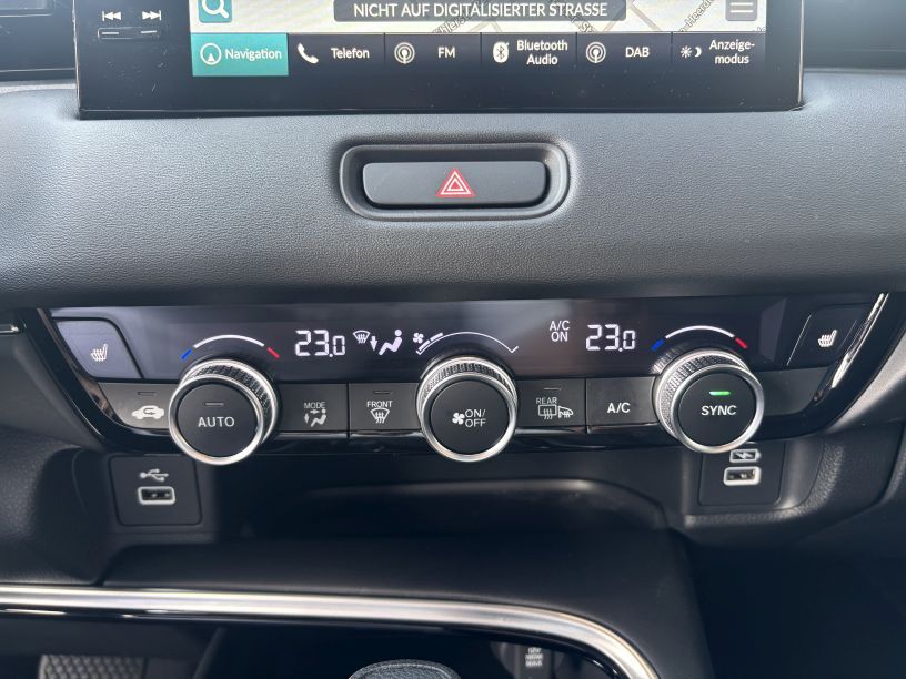 Außenfarbe SAND KHAKI P./SCHWARZInnenraum schwarzSitze TeillederAutom. Begleitfunktion der Beleuchtung (Coming HoAutomatische Fahrlichtschaltung / LichtsensorAußenspiegel elektr. verstell- und heizbar beideAußenspiegel mit Bordsteinautomatik rechtsBetätigung Heckklappe/-Deckel automatischBremsenergierückgewinnung (Rekuperationssystem)Fahrassistenz-System: Bergabfahrhilfe (HDA)Fahrassistenz-System: Eco Assist (Econ Modus)Fahrassistenz-System: Fahrprofilauswahl (Drive MoFahrassistenz-System: Fernlichtassistent (HSS)Fahrassistenz-System: Intelligente GeschwindigkeiFahrassistenz-System: Kollisionswarnsystem mit BrFahrassistenz-System: Sicherheitssystem mit automFahrassistenz-System: Spurhalteassistent (LKAS /Fahrassistenz-System: Spurverlassenswarnung (LaneFahrassistenz-System: Stauassistent (LSF)Fahrassistenz-System: VerkehrszeichenerkennungFensterheber elektrisch vorn und hinten mit Auf-Freisprecheinrichtung (Bluetooth) mit SprachsteueInfotainment-System: Honda Connect mit 9&apos, TouchscMotorsound-System (Acoustic Vehicle Alerting SystSmart Entry & Start (schlüsselloses Zugangs-SysteSteckdose (12V-Anschluß) in ArmaturentafelAutom. Begleitfunktion der Beleuchtung (Automatische Fahrlichtschaltung / LichtsAußenspiegel elektr. verstell- und heizbAußenspiegel mit Bordsteinautomatik recBremsenergierückgewinnung (RekuperationsFahrassistenz-System: Bergabfahrhilfe (HFahrassistenz-System: Eco Assist (Econ MFahrassistenz-System: FahrprofilauswahlFahrassistenz-System: FernlichtassistentFahrassistenz-System: Intelligente GeschFahrassistenz-System: KollisionswarnsystFahrassistenz-System: SicherheitssystemFahrassistenz-System: SpurhalteassistentFahrassistenz-System: SpurverlassenswarnFahrassistenz-System: Stauassistent (LSFFahrassistenz-System: VerkehrszeichenerkFensterheber elektrisch vorn und hintenFreisprecheinrichtung (Bluetooth) mit SpInfotainment-System: Honda Connect mit 9Kofferraumdeckel / Heckklappe elektr. beMotorsound-System (Acoustic Vehicle AlerSmart Entry & Start (schlüsselloses ZugaSteckdose (12V-Anschluß) in ArmaturentafRadstand 2610 mmReifen-ReparatursetRückfahrkameraRücksitz geteilt / klappbarRücksitze im Fahrzeugboden versenkbarSchadstoffarm nach Abgasnorm Euro 6dSchalt-/Wählhebelgriff LederScheibenwischer mit RegensensorScheibenwischerenteiser vornScheinwerfer LEDSeitenairbag hintenSeitenairbag vornSeitenairbag vorn mitte (Center-Airbag)Servolenkung elektronisch gesteuertSitz vorn links höhenverstellbarSitzbezug / Polsterung: Stoff/KunstlederSitzheizung vornElektromotor 96 kW (Hybridantrieb)Sonnenblenden mit Make-up-SpiegelExterieurumfänge schwarz lackiertTagfahrlicht LEDUSB-Ladeanschluß hinten (2-fach)USB-Ladeanschluß vornUSB-SchnittstelleWegfahrsperreAnzeige für Reifendruck im DisplayFahrassistenz-System: Berganfahrhilfe6 LautsprecherAirbag Beifahrerseite abschaltbarAußenspiegel Chrom satiniertAußenspiegel elektr. anklappbarAktive Kopfstützen vornAlarmanlageAnhänger-Stabilisierungs-Programm (TSA)Blinkleuchte in Außenspiegel integriertBremsassistentAntriebsart: FrontantriebDachantenne im Haifischflossen-DesignDachspoilerGepäcknetz an Vordersitzlehne linksGepäcknetz an Vordersitzlehne rechtsGepäckraumabdeckung / RolloGetriebe Automatik stufenlos - ECVTGetränkehalter hintenGetränkehalter vornGurtstrafferHeckleuchten LEDHeckscheibenwischerHybrid 96 kW (Motor 1 5 Ltr. - 79 kW)Einparkhilfe vorn und hintenInnenspiegel mit AbblendautomatikIsofix-Aufnahmen für KindersitzKarosserie: 5-türigKlimaautomatik 2-ZonenKnieairbag FahrerseiteKopf-Airbag-SystemKühlergrill WagenfarbeLM-Felgen 7 5x18 (5-Doppelspeichen)Lenkrad (Leder)Lenkrad heizbar* Lenksäu