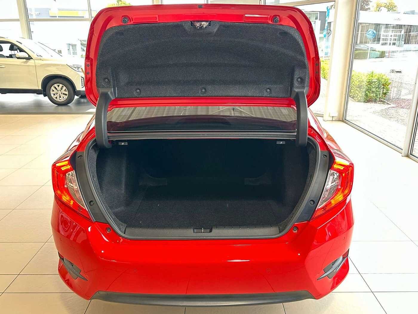 8 Lautsprecher, Airbag Beifahrerseite abschaltbar, Airbag Fahrer-/Beifahrerseite, Ambiente-Beleuchtung, Auto-Hold-Funktion, Autom. Begleitfunktion der Beleuchtung (Coming Home, Leaving Home), Automatische Fahrlichtschaltung / Lichtsensor, Außenspiegel asphärisch, links, Außenspiegel elektr. anklappbar, Außenspiegel elektr. verstell- und heizbar, Blinkleuchte in Außenspiegel integriert, Bremsassistent, DAB-Tuner (Radioempfang digital), Dachantenne im Haifischflossen-Design, Einparkhilfe vorn und hinten, Elektr. Bremskraftverteilung, Fahrassistenz-System: Abstandswarner mit Bremsfunktion und Gurtstrafferfunktion (CMBS), Fahrassistenz-System: Adaptive elektr. Servolenkung (Motion Adaptive Electric Power Steering), Fahrassistenz-System: Berganfahrhilfe, Fahrassistenz-System: Fernlichtassistent (HSS), Fahrassistenz-System: Kollisionswarnsystem FCW, Fahrassistenz-System: Spurhalteassistent (LKAS / LDW), Fahrassistenz-System: Verkehrszeichenerkennung, Fahrer-Informations-System, Fensterheber elektrisch vorn + hinten, Freisprechanlage Bluetooth, Fußmatten, Getränkehalter hinten, Getränkehalter vorn, Gurtstraffer, Handschuhfach beleuchtet, Infotainment-System: Honda Connect mit CD- und MP3-Player, Navigationssystem und DAB Radioempfang, Intelligenter Geschwindigkeits-Begrenzer (ISL), Isofix-Aufnahmen für Kindersitz, Karosserie: 4-türig, Klimaautomatik 2-Zonen, Kopf-Airbag-System, Kopfstützen hinten (3-fach), Kopfstützen vorn neigungsverstellbar, Kühlergrill verchromt, Lendenwirbelstütze Sitz vorn links, elektr. verstellbar, Lenksäule (Lenkrad) höhen-/längsverstellbar, Leseleuchten vorn, Leuchtweitenregelung, LM-Felgen, Mittelarmlehne hinten, Motor 1,5 Ltr. - 134 kW VTEC KAT, Multifunktion für Lenkrad, Nebelschlussleuchte, Notbremssignal, Parkbremse elektrisch, Reifen-Reparaturset, Reifenkontroll-Anzeige, Rückfahrkamera, Rücksitzlehne geteilt/klappbar, Schadstoffarm nach Abgasnorm Euro 6, Schalt-/Wählhebelgriff Leder, Seitenairbag vorn, Sitz vorn links höhenverstellbar, Sitzheizung vorn, Sonnenblenden mit Make-up-Spiegel, Sonnenblenden mit Spiegel (beleuchtet), Sport-Pedalerie Aluminium, Start/Stop-Anlage, Steckdose (12V-Anschluß) in Armaturentafel, Stoßfänger Wagenfarbe, Türgriffe außen verchromt